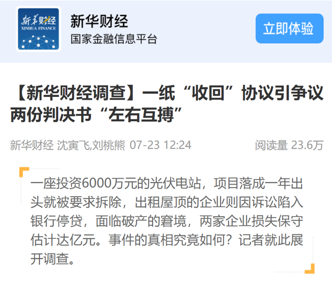 2021年7月,新華財經報道了河北一個分布式光伏項目案例。項目投資6000萬,投產一年,屋頂就要求被拆除,投資企業損失達億元!